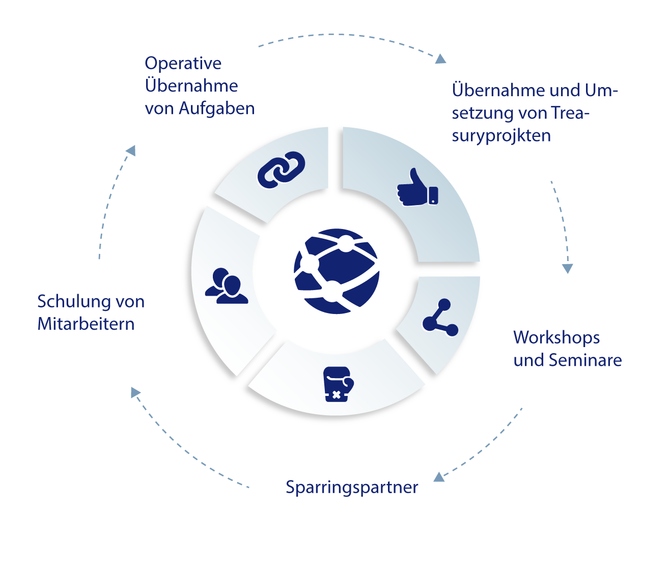 Sparringspartner für den Head of Treasury oder Mitarbeiter in Treasuryabteilungen oder Interimkollegen (u.a. für anstehende, laufende oder beendete Projekte)